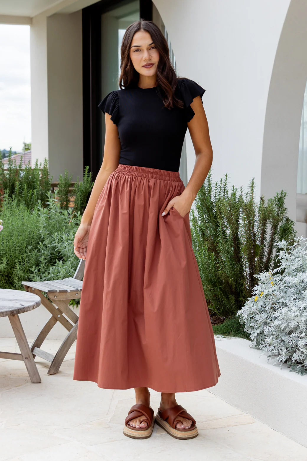 A refined essential with a soft statement. The Agnes Frill Tank is cut from stretch ribbed fabric, offering a close, comfortable fit. Double-lined frill sleeves add subtle volume, balanced by a clean round neckline and streamlined silhouette!