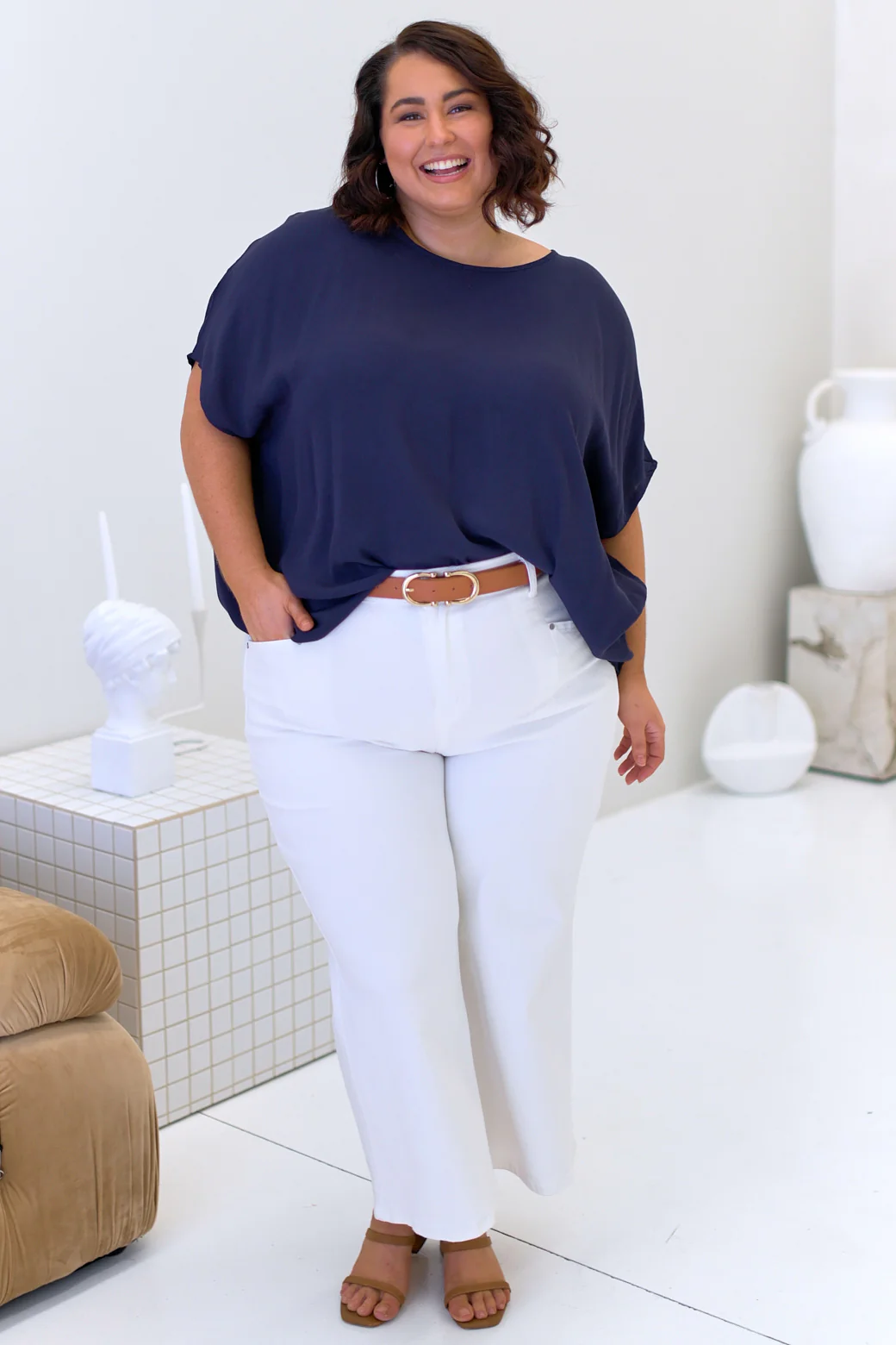 The Brodie Drape Top in Navy is plain, simple and great for styling! The perfect Drape Top you didn't know you needed! Style it with your favourite jeans and tan sandals or layer it up during the colder months!