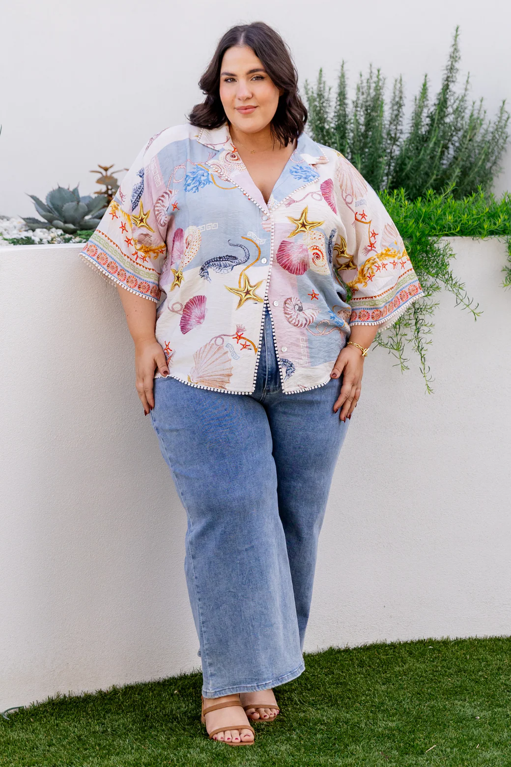 Step into Summer with our Molly Shirt in the vibrant Ocean Queen Print! Perfect for pairing with white linen shorts or the matching Harriet Pants. Embrace the season with this effortless and stylish piece!!
